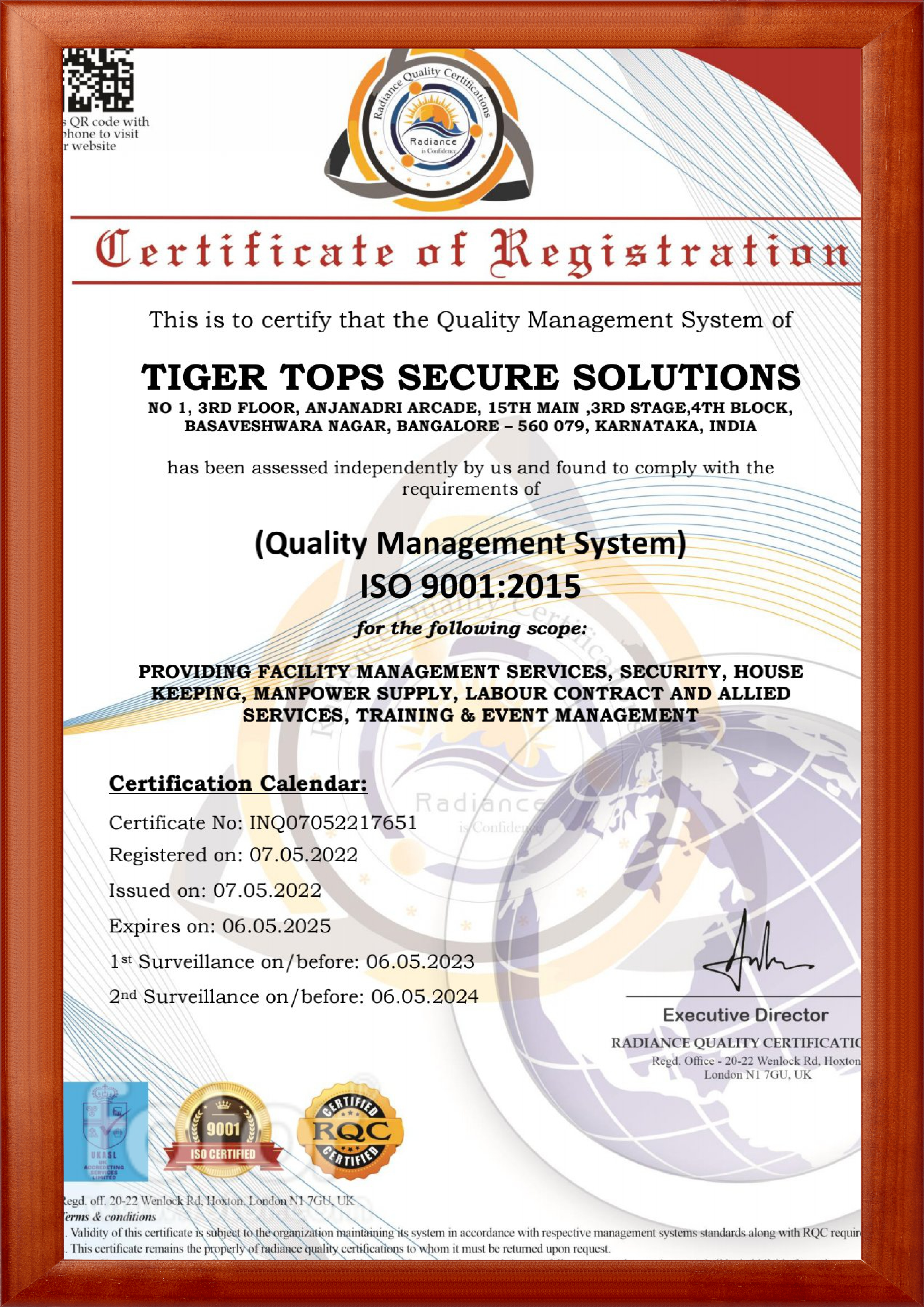 Tiger Tops Secure Solutions is an ISO Certified Company Providing services in Bangalore & across Karnataka in various Segments like Educational Institutions , Hospitals , Software Companies , Multinational Companies , Private & Public Sector undertakings , University , Hotels , Religious places etc....
