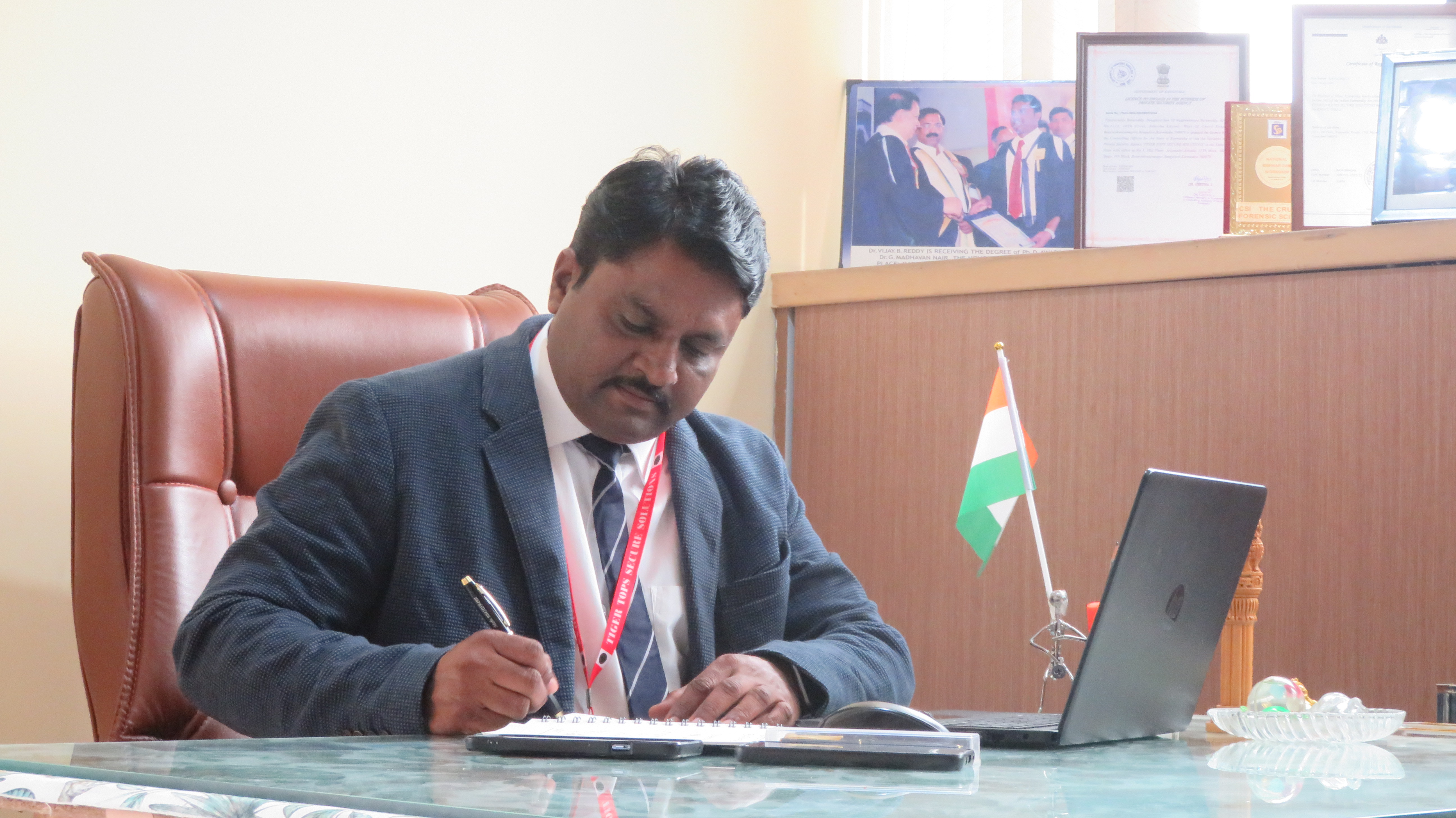 The Managing Director of Tiger Tops Secure Solutions is Dr. Vijay Reddy B ( Criminologist ) Ph.D in Criminology & Forensic Science having 15 years of Experience in Security , Vigilance & Facility Management Services.